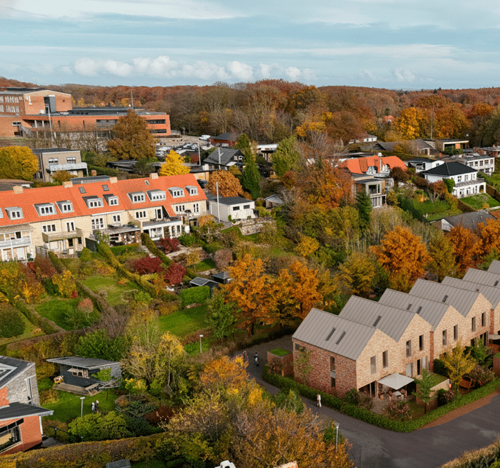 Alle boliger får private haver og adgang til fælles grønne områder mellem husene.