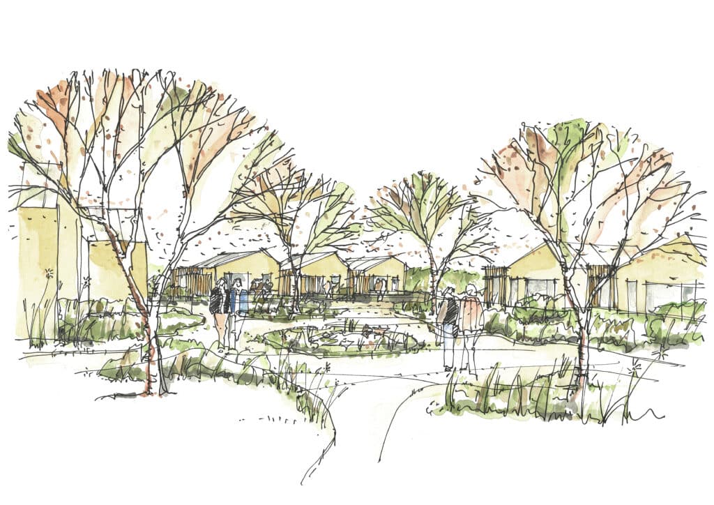 Projektet indrettes med fælles opholdsarealer, legeplads, orangeri samt nyttehaver og frugttræer, som understøtter fællesskabet mellem husene. Byggestart forventes i sommeren 2027 med planlagt indflytning i sommeren 2028.